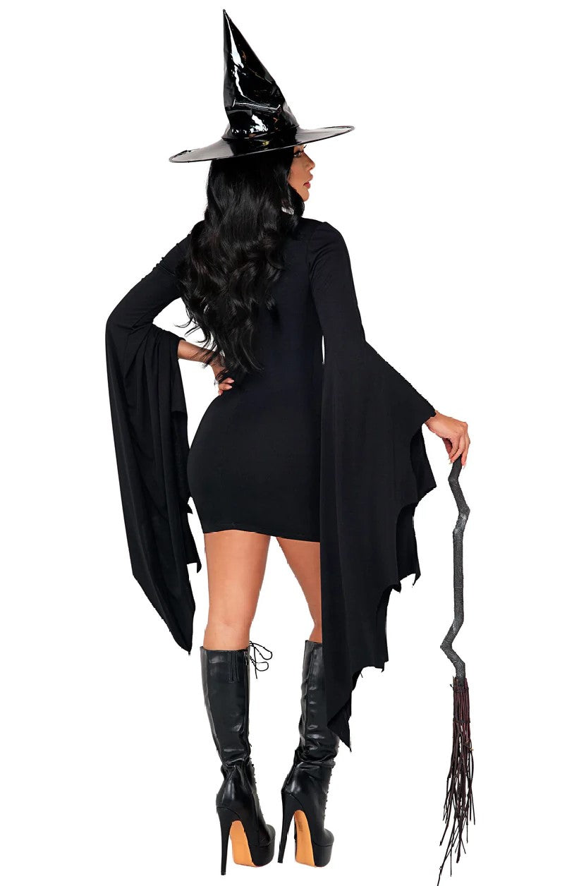 Introducing the Midnight Witch costume! This costume is perfect for any witchy occasion. The dress features a lace up detail and a vinyl hat for a truly magical look. Gorgeous Halloween costume is sure to make you stand out from the crowd. With its unique design and attention to detail, you'll be sure to make a statement.