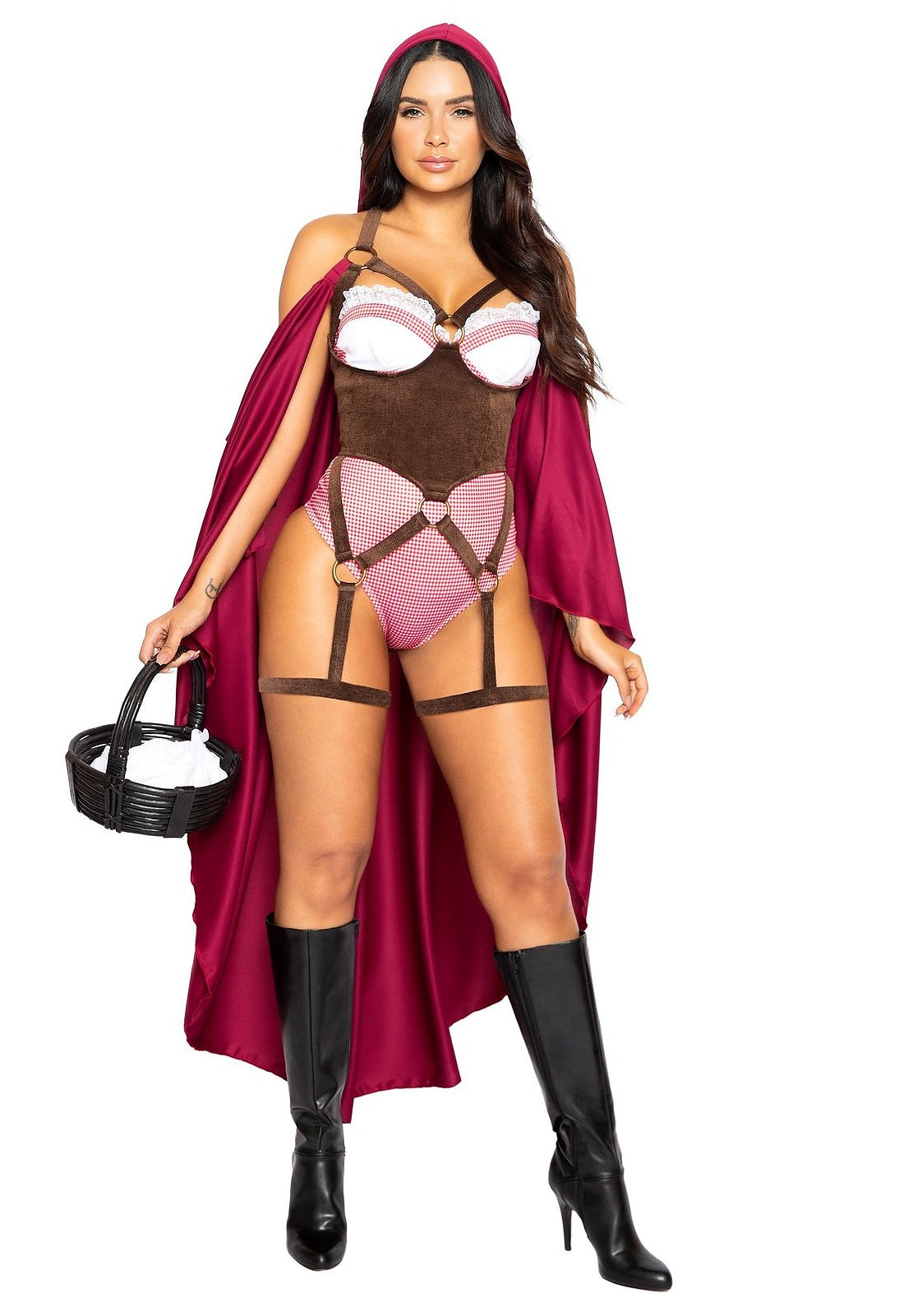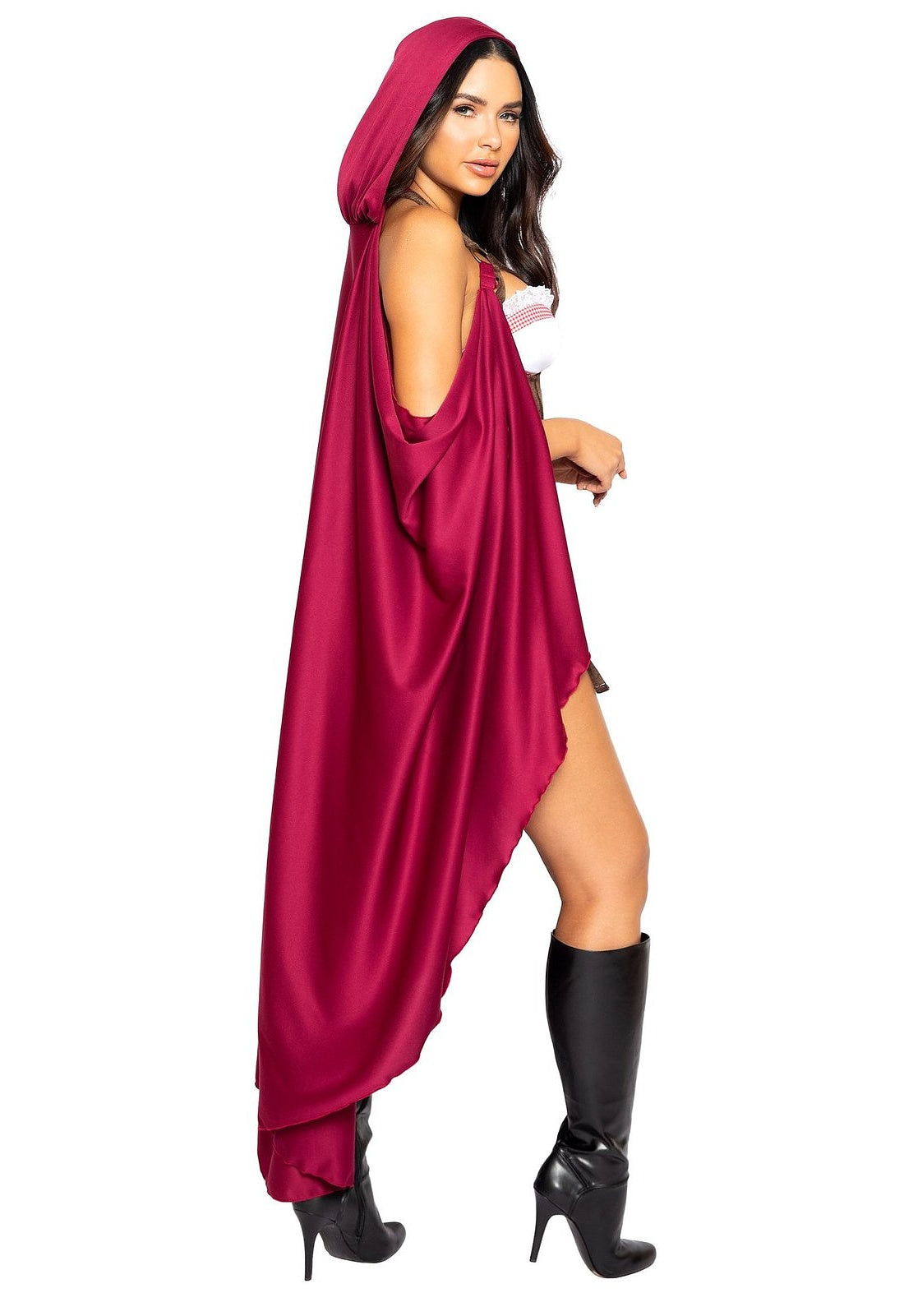 Stylish halloween costume red ridding hood is cute & comfortable. Costume features off the shoulder cape, harness waist cincher and #romper