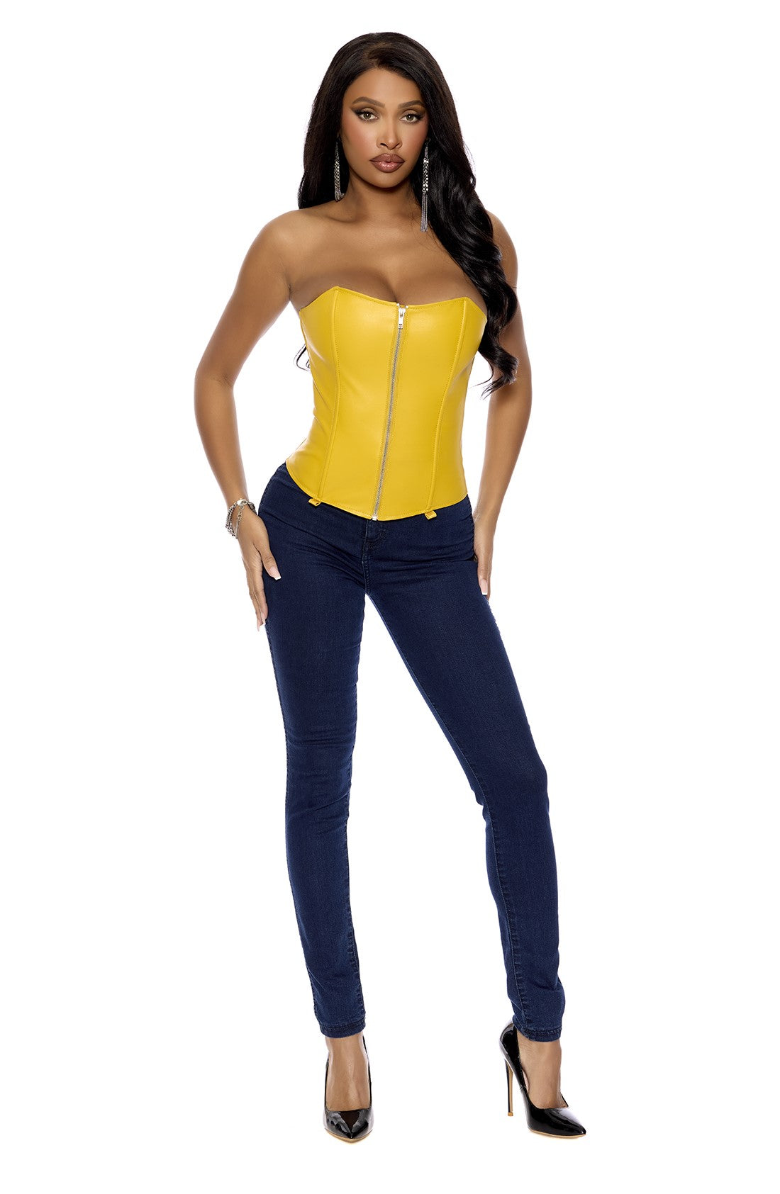Spicy Leather yellow strapless bustier
